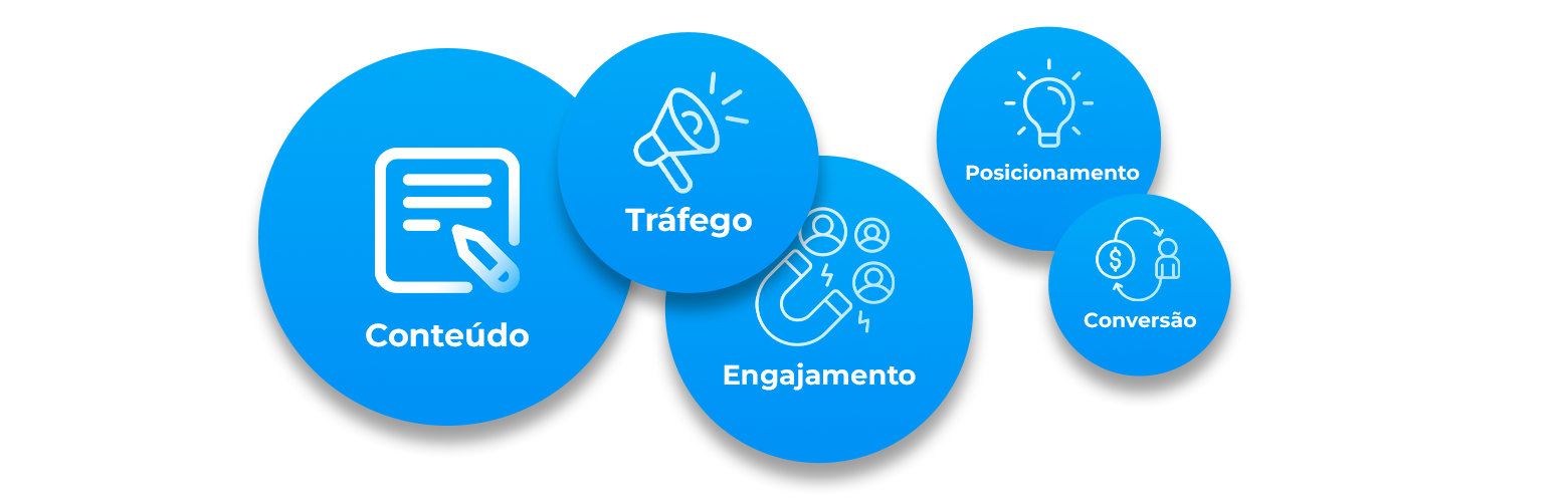 Não adianta ter um design profissional sem direcionamento(destacar direcionamento). Uma estratégia de conteúdos que irão fazer 4 coisas pela sua empresa: crescimento, autoridade, conexão e vendas.